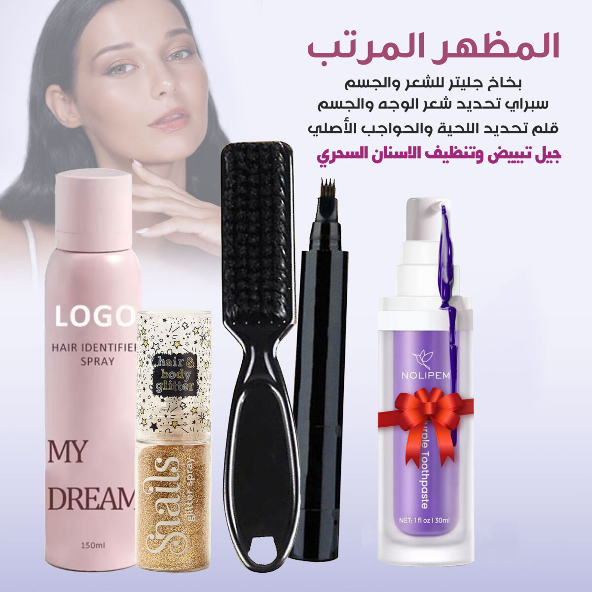 بخاخ الجليتر يضيف لمعة حلوة للشعر أو الجسم لأي مناسبة.