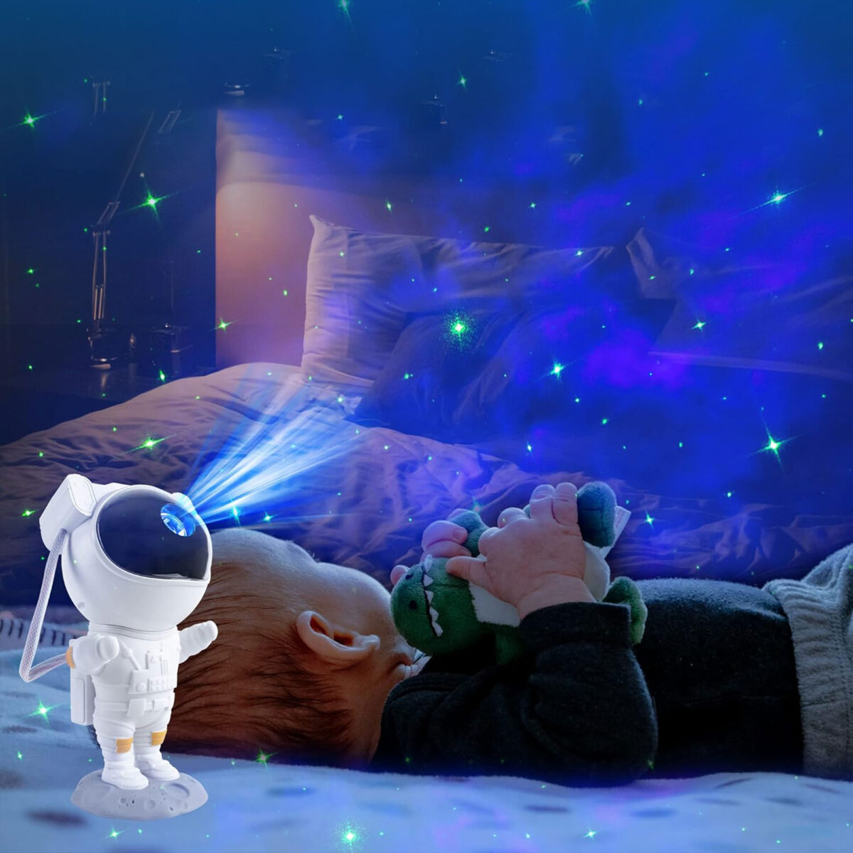 – شكله رائد فضاء يلفت انتباه الصغار ويطلع إضاءات LED تخقق.