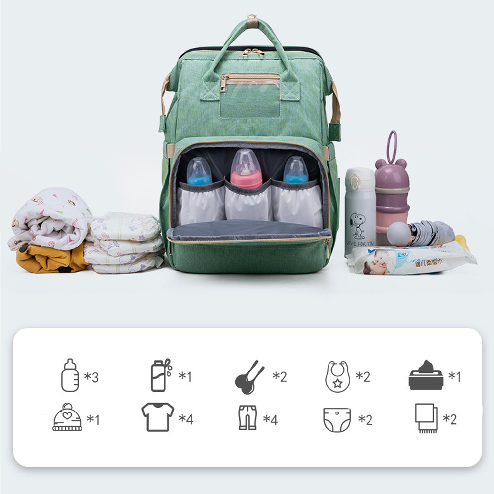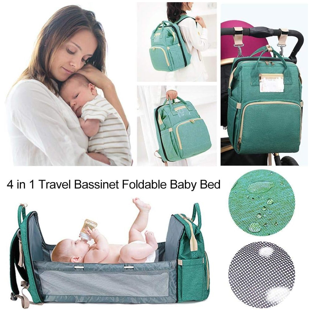 حقيبة حفاضات الأطفال المحمولة، قابلة للطي ومنفذ شحن USB.
