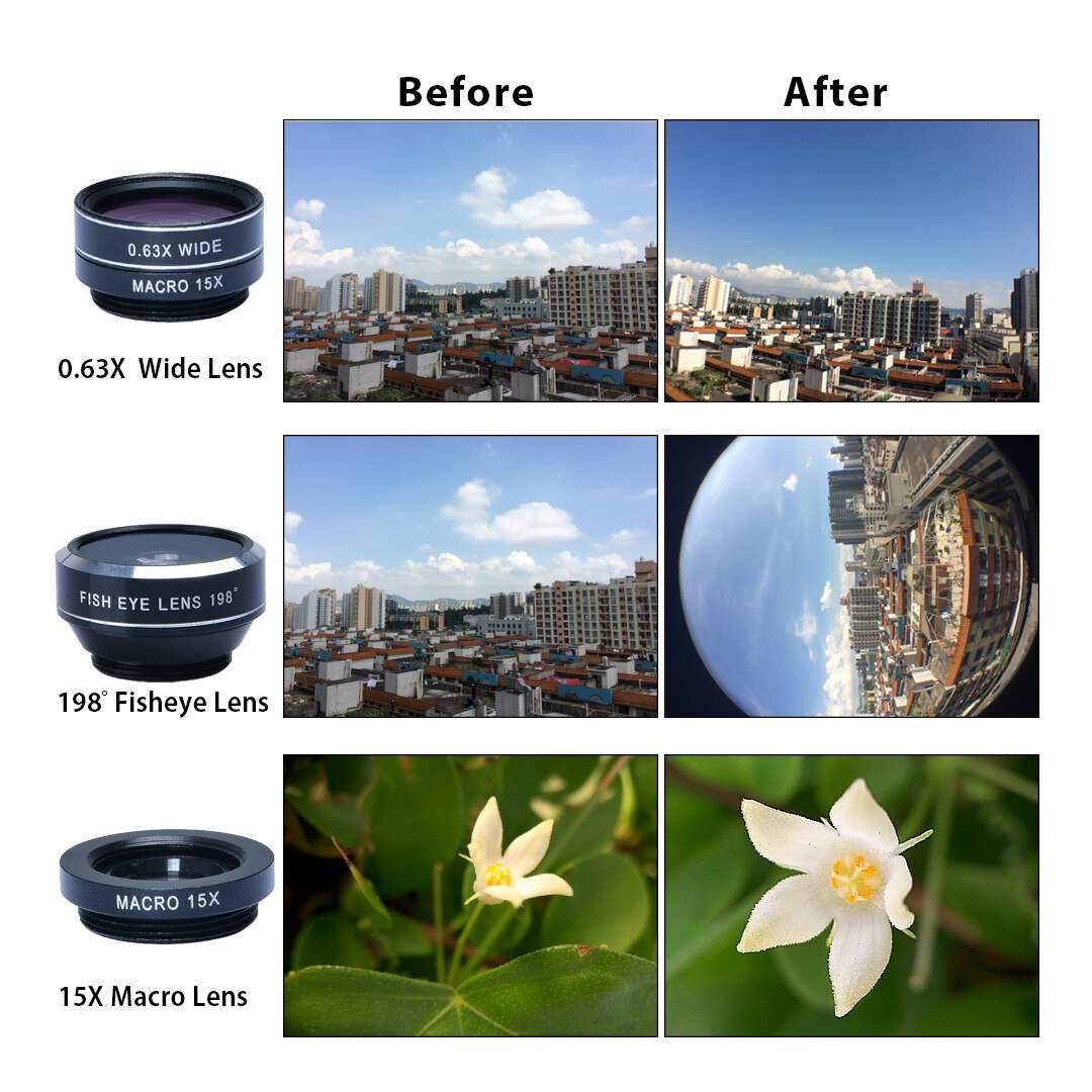 طقم عدسات يأتي بعدسات عين السمكة، عدسات تكبير وتقريب وعدسات للزوايا الواسعة وعدسات اخرى متنوعة.