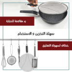 خله يغطي كامل المقلاة عشان يمنع رذاذ الزيت.