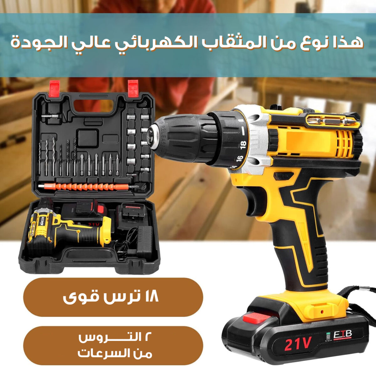 – قوة 21V مع 600 واط لإنجاز المهام بسرعة وكفاءة عالية.