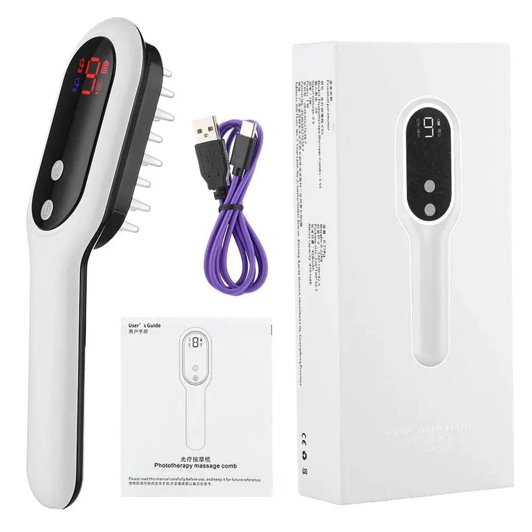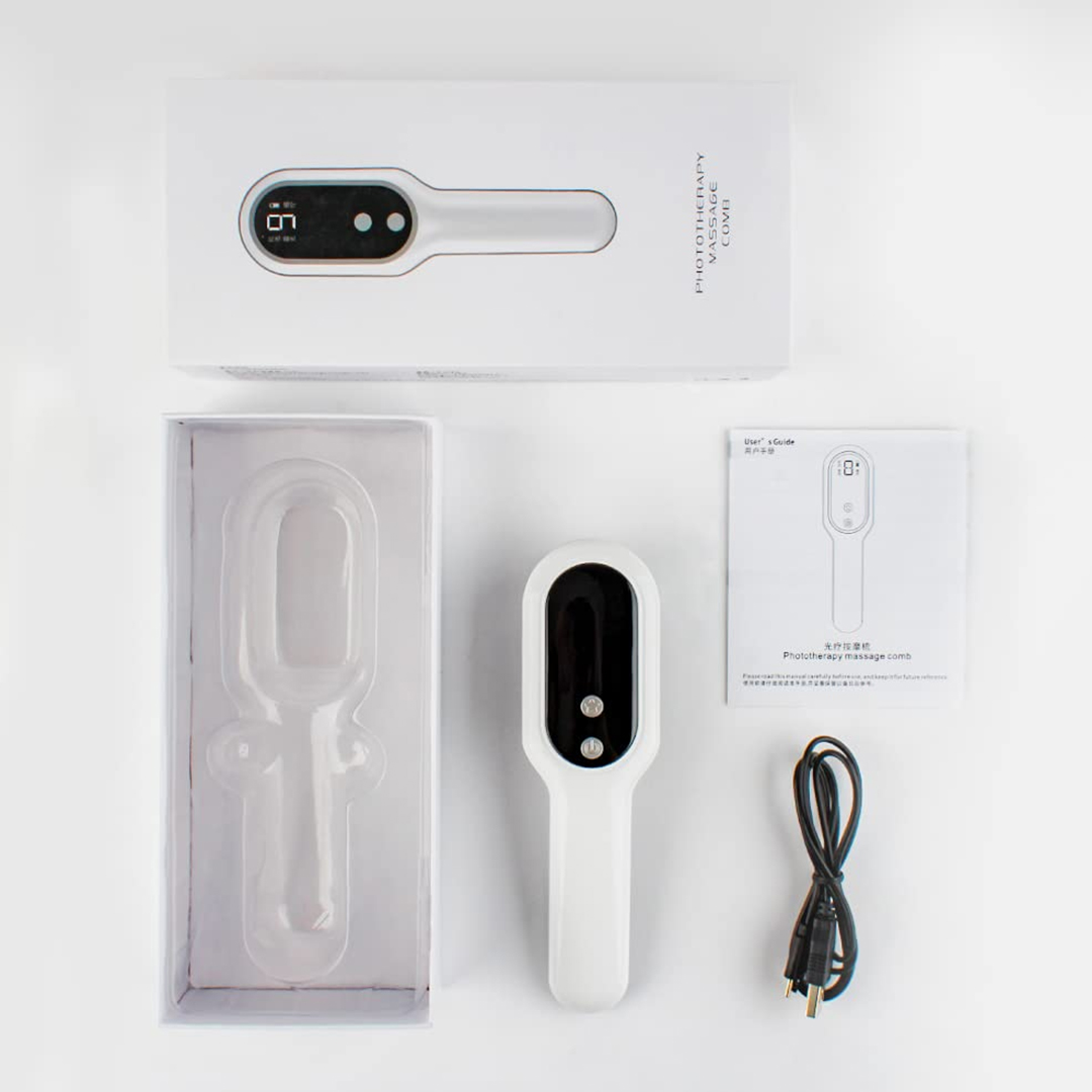 – مشط تدليك للعلاج بالضوء مع كابل شحن type C.