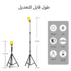 – معه حامل عمودي وحامل ثلاثي القوائم وسلك بطول 5 متر.